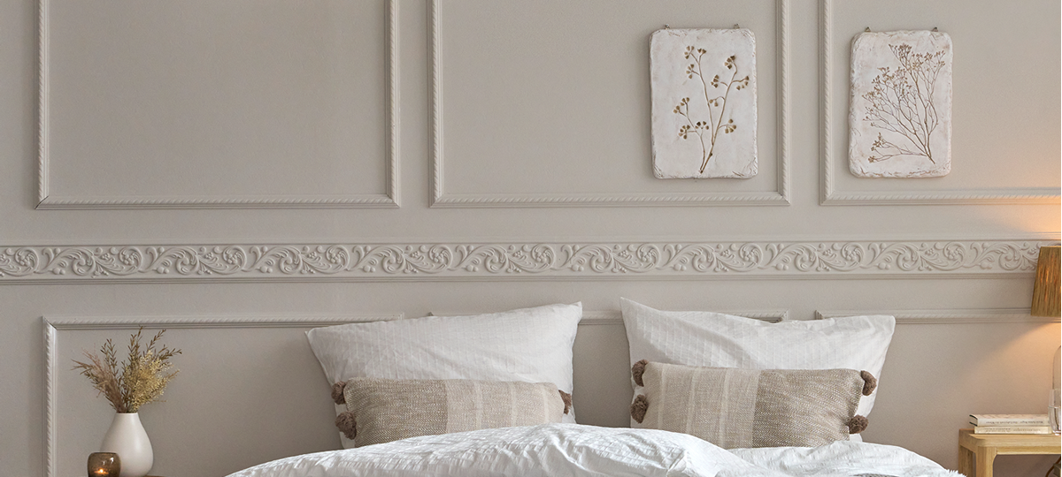Met enkele eenvoudige handelingen en de juiste sierlijsten van decoflair tovert u uw slaapkamer om tot een gezellige en herfstachtige oase van welzijn. Hier volgt onze stap-voor-stap handleiding voor uw herfstige wandmake-over.