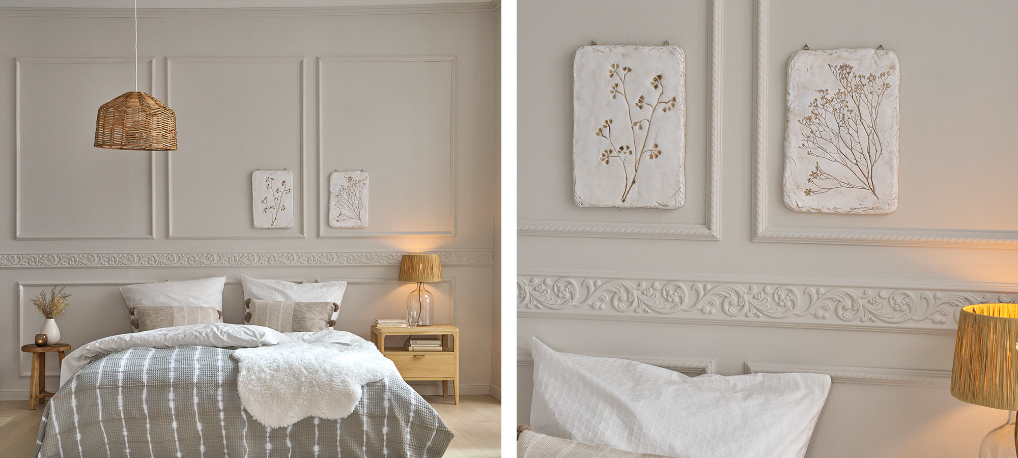 Herbstliches Makeover – gemütliche Wandgestaltung fürs Schlafzimmer mit Zierleisten von decoflair